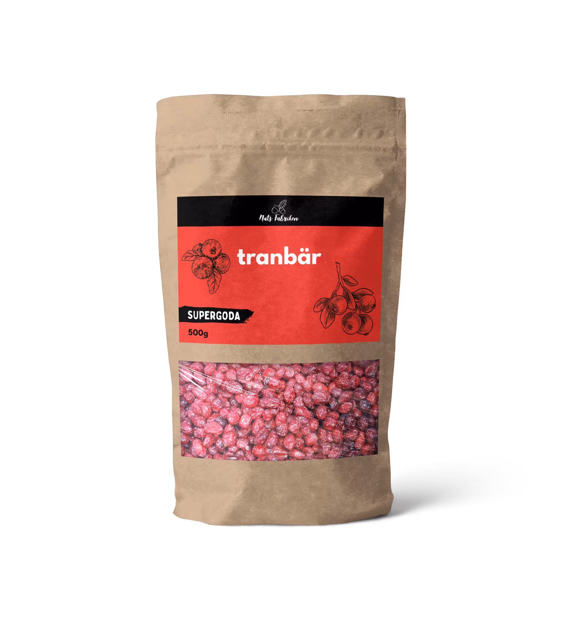 Ingredienser: Torkade tranbär, rörsocker, solrosolja. Produkten kan innehålla: GLUTEN, JORDNÖTTER, NÖTTER och SESAMFRÖN. Förvaras på en torr och sval plats.
